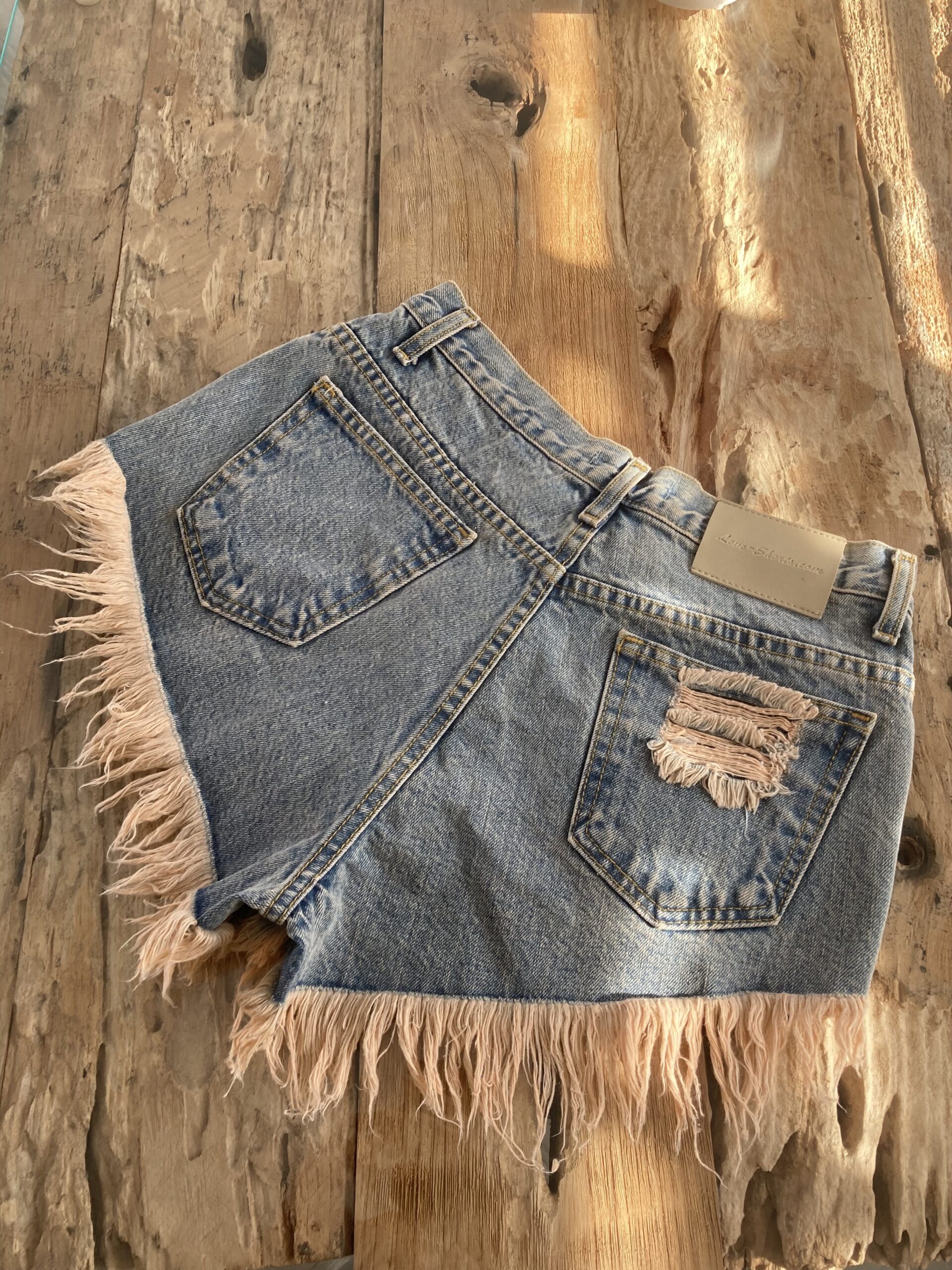 Spodenki zostały poddane procesowi starzenia stone wash oraz wybielania marmo.